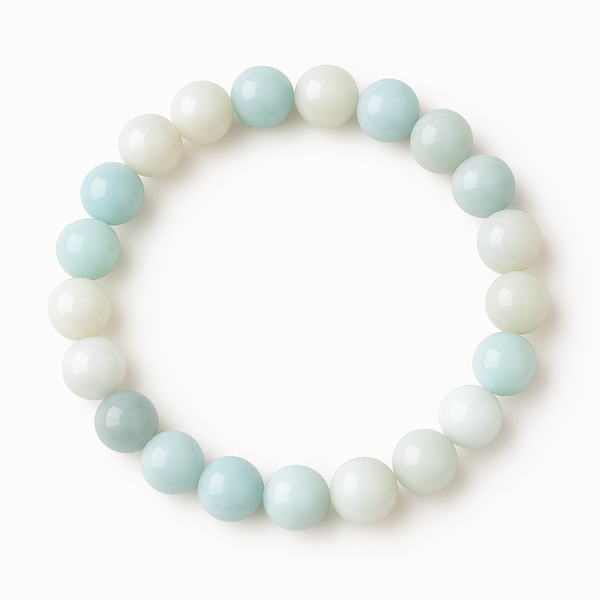 A refined composition of Arctic Blue Agate gemstones displays delicate banding and natural translucence that evoke calm and harmony. The bracelet feels gentle and balanced — a graceful reflection of compassion, connection, and mindful serenity.
