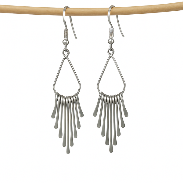 A sleek silver-plated design catches the light with every movement, balancing fluidity and sophistication. Each earring measures approximately 2.75 inches and is finished with hypoallergenic earwires for lasting comfort and effortless elegance.