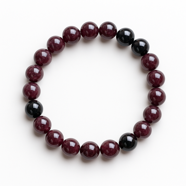 A refined composition of Garnet and Sardonyx gemstones unites richness and structure in harmonious balance. The bracelet feels grounded and luminous — a graceful reflection of loyalty, friendship, and mindful resilience.