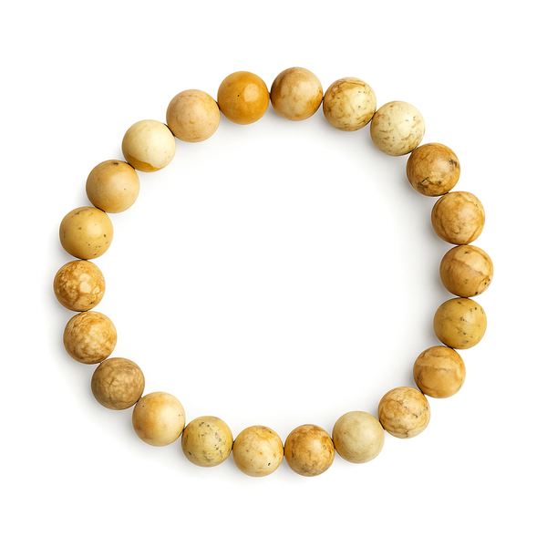 A harmonious composition of Picture Jasper gemstones displays natural bands of tan, brown, and cream that reflect the artistry of the earth. The bracelet feels centered and timeless — a graceful reflection of steadiness, connection, and mindful elegance.