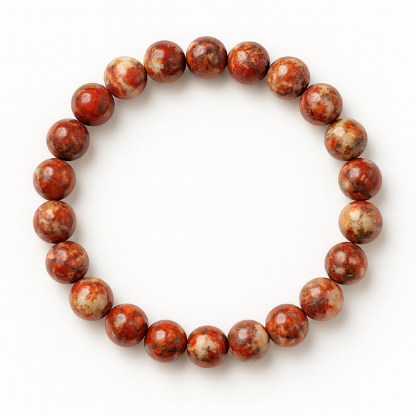A composition of Flower Poppy Jasper from California’s Morgan Hill region reveals natural quartz and feldspar inclusions that form poppy-like patterns. Valued for its vitality and grounding strength, it embodies resilience, perseverance, and enduring beauty.