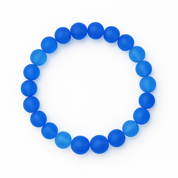 A tranquil composition of Sapphire Blue Matte Agate gemstones reveals subtle natural variations that convey strength and individuality. The bracelet feels grounded and refined — a graceful reflection of endurance, stability, and mindful composure.
