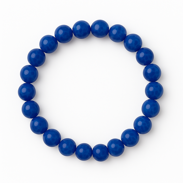 A refined composition of Cobalt Blue Fire Agate gemstones radiates vivid cobalt hues interlaced with natural patterning that reflects authenticity and calm. The bracelet feels centered and expressive — a graceful reflection of communication, balance, and mindful strength.