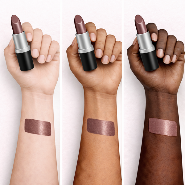 Stormy Pure Classic Lipstick delivers a shimmery smoky bronze with a smooth texture and a soft pearlescent finish that reflects light with deep, dimensional warmth.