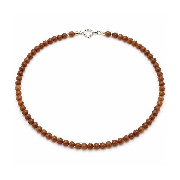 A handcrafted 16-inch necklace featuring 4 mm natural agate gemstones in warm brown and amber tones, strung with a sterling silver clasp and displayed on a white background.