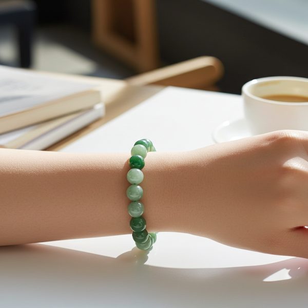 - • Genuine Agate & Green Aventurine: Balanced combination of banded agate paired with soft green aventurine featuring subtle mineral shimmer.