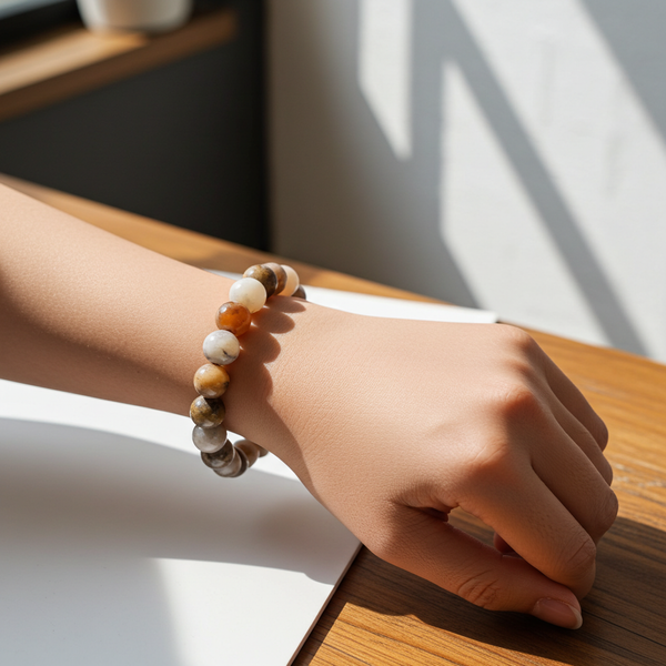 - • One of a Kind: Each gemstone displays unique natural inclusions, patterning, and color variation. No two bracelets are identical, and the balance of tones may vary from piece to piece.