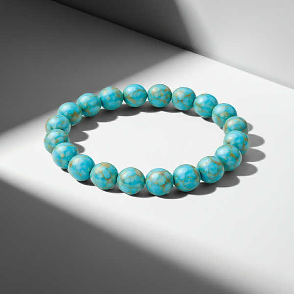 • Natural Structure: A hand-assembled mosaic of genuine polycrystalline turquoise and iridescent biogenic shell (nacre) set in a durable mineral matrix.